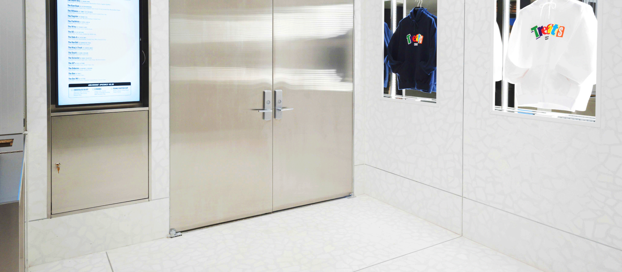 The Miami Beach retail store, designed by Snarkitecture, utilizes our large terrazzo tiles in four gradient blue hues on the walls, columns, and counters as well as on the floors.